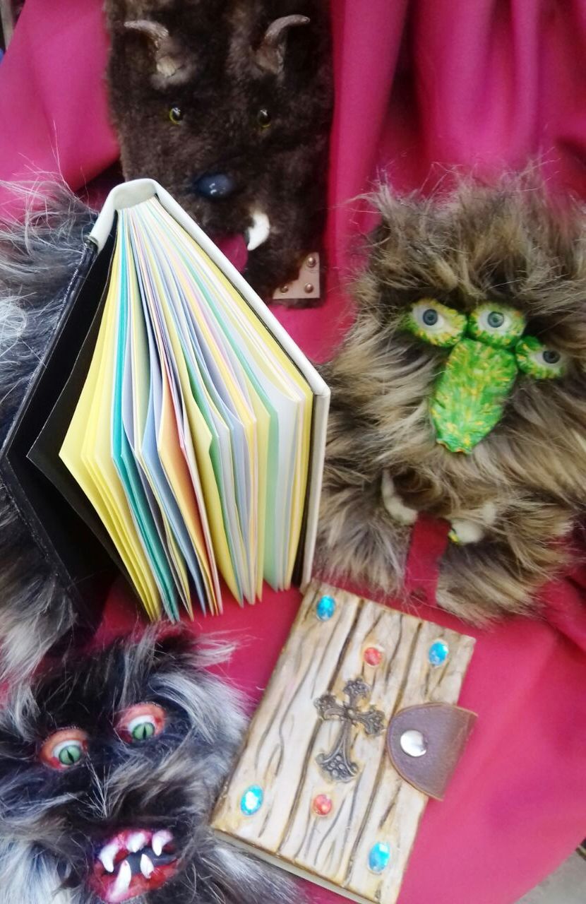 Para festejar el Día del Niño, produje estos libros con tapas simulando monstruos de fantasía. Disfruté de la cooperación del artesano Cesar Palacio para el terminado de estos ejemplares.